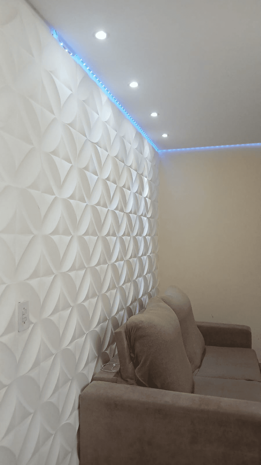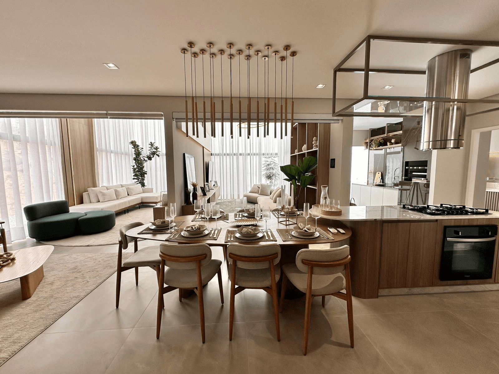 • Sala ampla, com teto rebaixado em gesso e piso em porcelanato, proporcionando um ambiente moderno e elegante