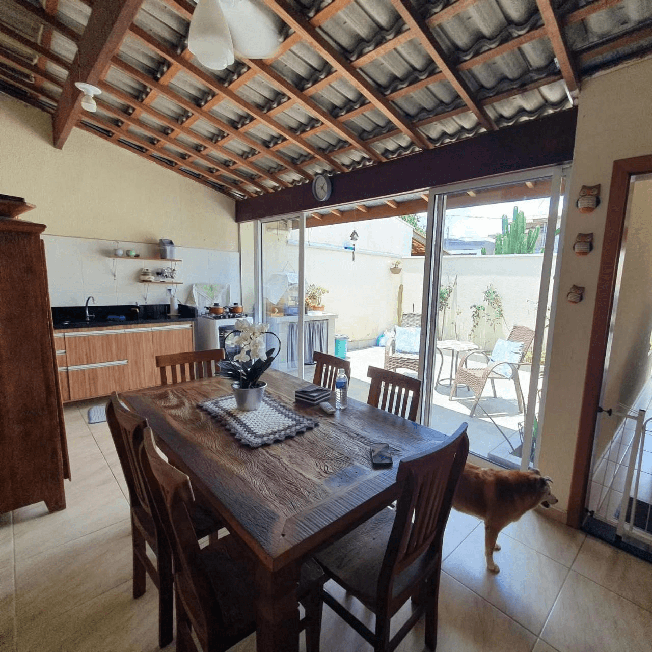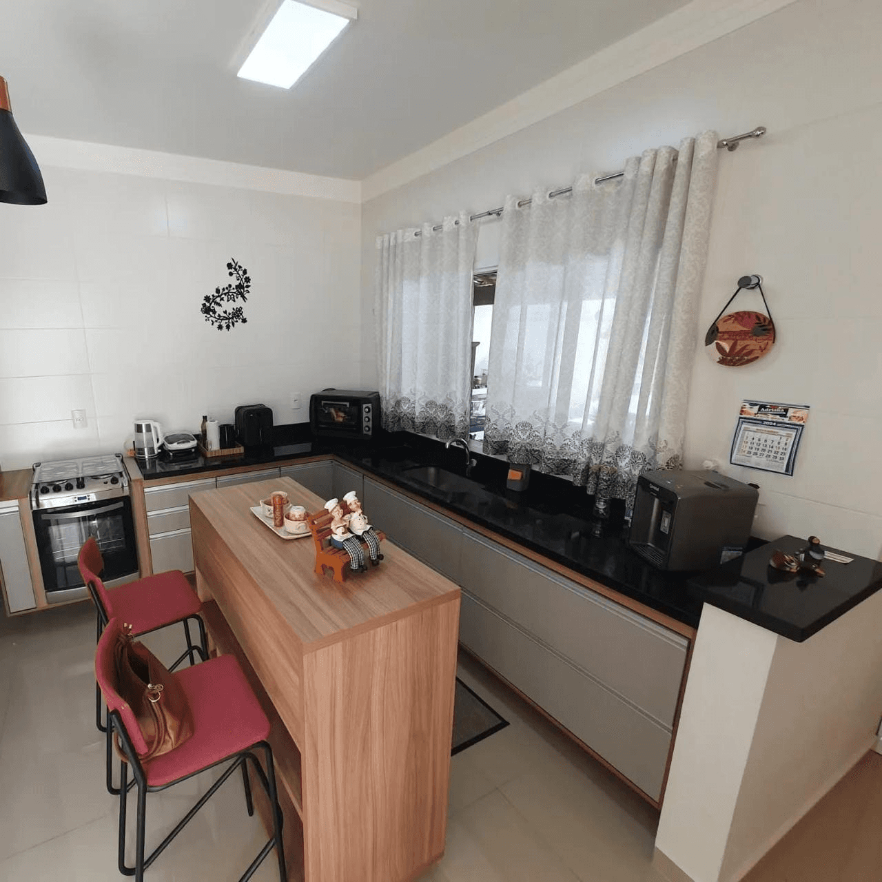 A casa conta com cozinha e banheiros com móveis planejados, proporcionando praticidade e organização. O espaço social se integra a uma agradável área gourmet, ideal para receber amigos e familiares. Outro destaque é o jardim de inverno, que traz charme, iluminação natural e ventilação aos ambientes.